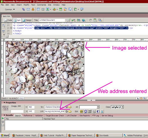 Click on the picture you inserted. In the link box at the bottom of the screen, type in a web address, for example, you could link to the wikipedia entry for shells http://en.wikipedia.org/wiki/Animal_shell